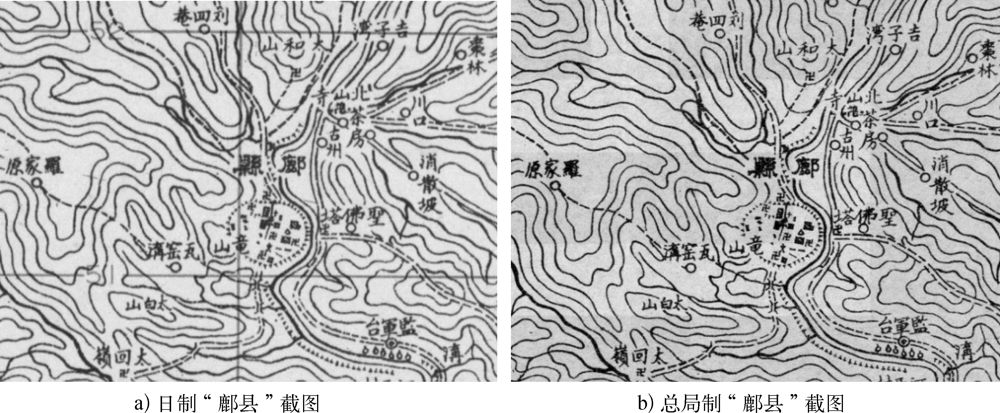 表2 日制“鄜县”图幅与民国政府制“鄜县”图幅比较 |