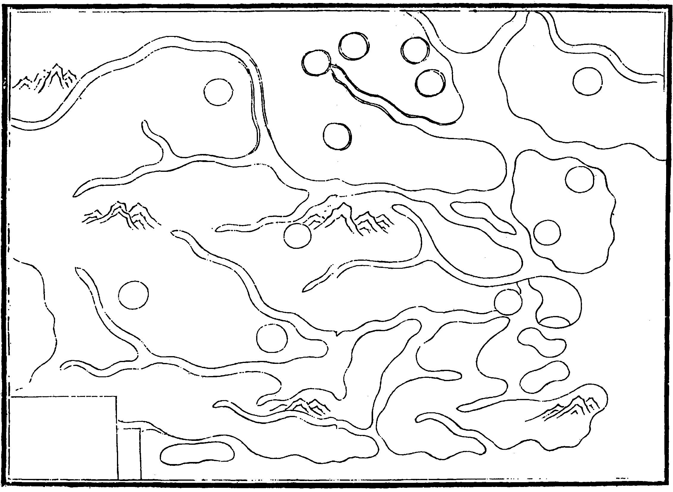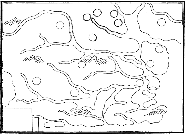 此外,1986年出土于甘肃天水放马滩秦墓的“天水放马滩地图”,绘制时间为战国秦惠文王后元十年至秦昭襄王八年(前305—前299)。图中绘有山脉、河流、沟溪、关隘、道路、山名、寺庙,注记山川、关隘和乡里聚邑名称,并注明乡里聚邑间的交通里程。绘制于西汉吕后七年至文帝十二年间(前181—前168)、1973年出土于湖南长沙马王堆三号汉墓“马王堆地图”中的“长沙国南部地形图”,绘有8个县城、74个可辨认的乡里,分别以方框和圆圈符号表示,实线和虚线分别表示大道与小路,河流用线条粗细区分源流,在河口处注出河名,部分河流源头标注“某水原”,用三种不同方式表示山岭。从绘制内容和墓主身份来看,可以大致确认这些出土于墓葬的地图是地方上使用的地图或者它们的摹本。