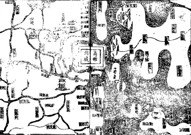 图3 隆庆年间高邮地理形势及“圈田”形态资料来源: 隆庆《高邮州志》卷首“州境之图”,第341页。 |