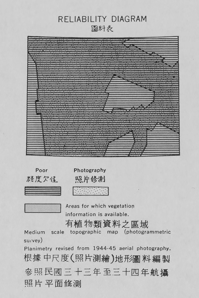 中国地形图中绘制时以当时可见最优(best available)中国地图为底图的占有相当大比例,尤其是L500系列,但地图说明未指明这些底图的发行单位、时间和番号,只说明其比例尺大小,故难以确切对应相关底图内容,只能根据史料推测。L500中近77%都选用了当时可用的最优底图,这些底图几乎全为大比例尺,仅有10%的地图参考过中比例尺地形图。西南、西北地区使用的多是“最优”底图。根据史料,AMS在20世纪50年代持有的中国大比例尺地形图大致有三类: 前文所述L781等一系列AMS编1:5万地形图,原始数据是我国的1:5万地形图;根据《中美合作航空测量合同》和《中美合作航空测量合同》所获我国大比例尺地形图;日本投降后美军缴获的日本编制地形图。①(①[日]小林茂:《外邦図——帝国日本のアジア地図》,中央公論新社,2011年,第247—249页。)这些地图大部分同源,均系我国的测量数据,而部分大城市及其周边如香港、上海、北京、南京、汉口则可能以GSGS所绘大比例尺地图为底图①(①L781中香港地区陆地部分是以1932年GSGS出版之1:2万地形图为底图。又,1945年AMS曾翻印GSGS在1927年出版的重要城市大比例尺地形图,可见AMS也掌握部分英制地图。),故所谓“最优中国地图”大部分源数据仍是我国测绘所得。