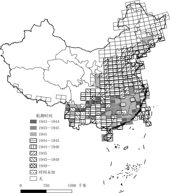 图3 中国地形图航测时间示意资料来源: 根据美国得克萨斯大学图书馆藏中国地形图L500、L542、L594系列之地图说明整理。 |