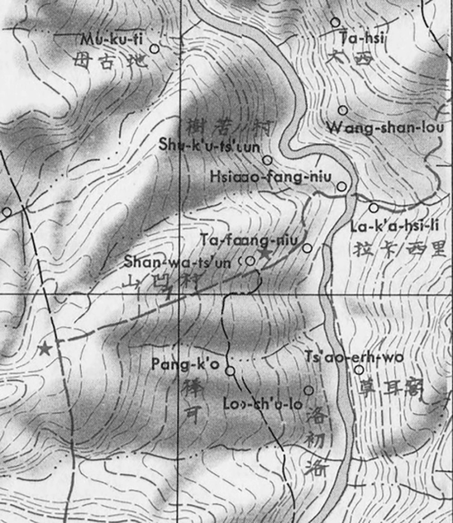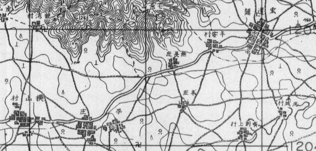 图8也有这两处的形状,以及连接二者的公路。 1936年中国参谋本部陆地测量局出版的1:10万地形图中也有这两个聚落,但均用圆点表示,无形状面积绘出。又据“忻县”之图备考可知,该图是日军根据虏获的五万分之一地形图缩小调制,按照中国1914年图式。将“忻县”图与1934年中国参谋本部陆地测量局出版的1:5万地形图(
